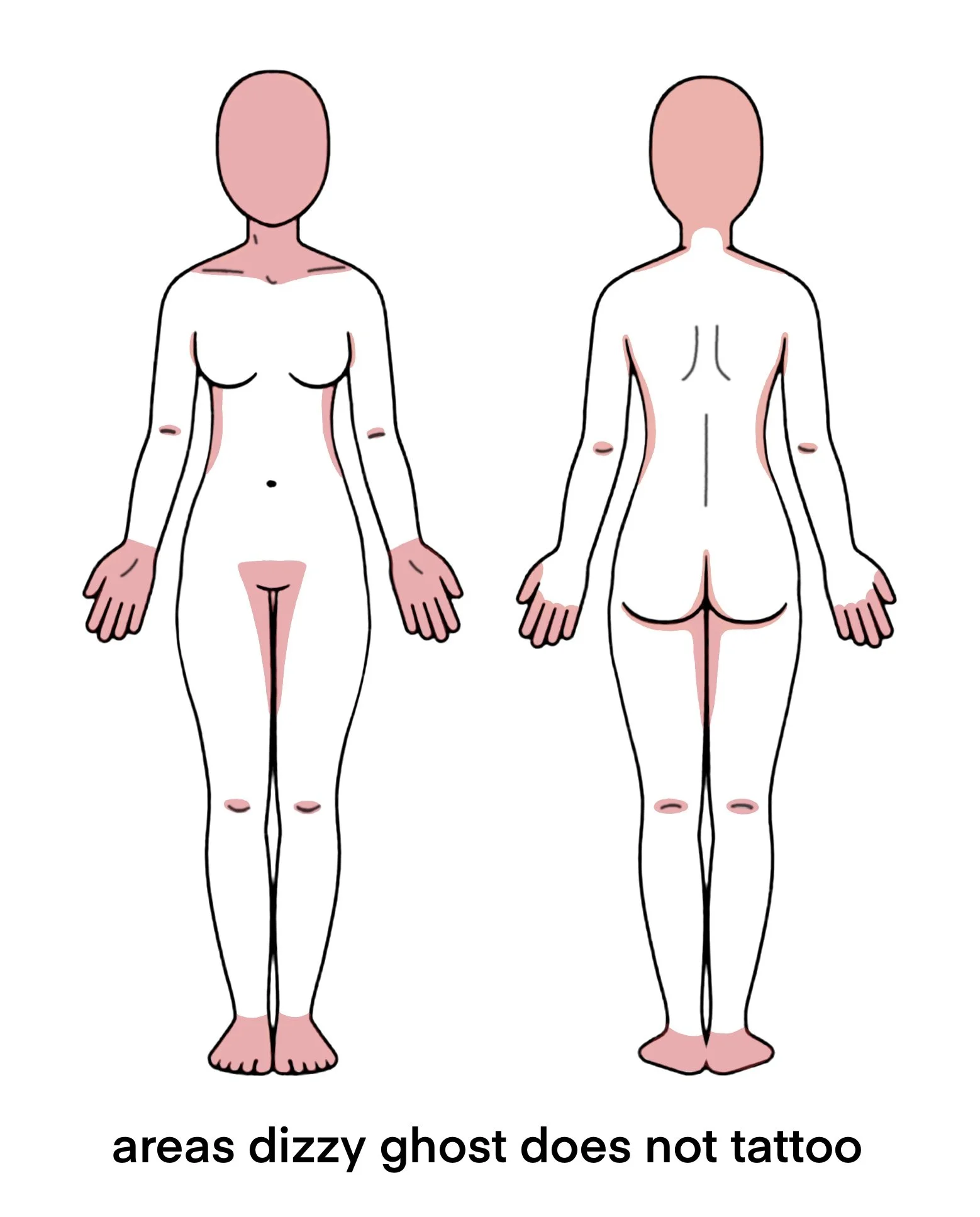 Areas that i do not tattoo: side of ribs, fingers, palm of hands, feet, behind ears, directly on elbows or knees, around armpits, inner thighs, neck or collar bones